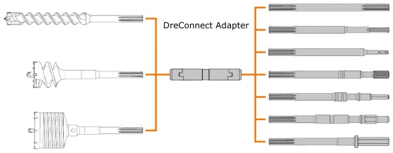 Sa adapterom DRECONECT možete produžiti SDSMAX pribor do odgovarajuće dužine.