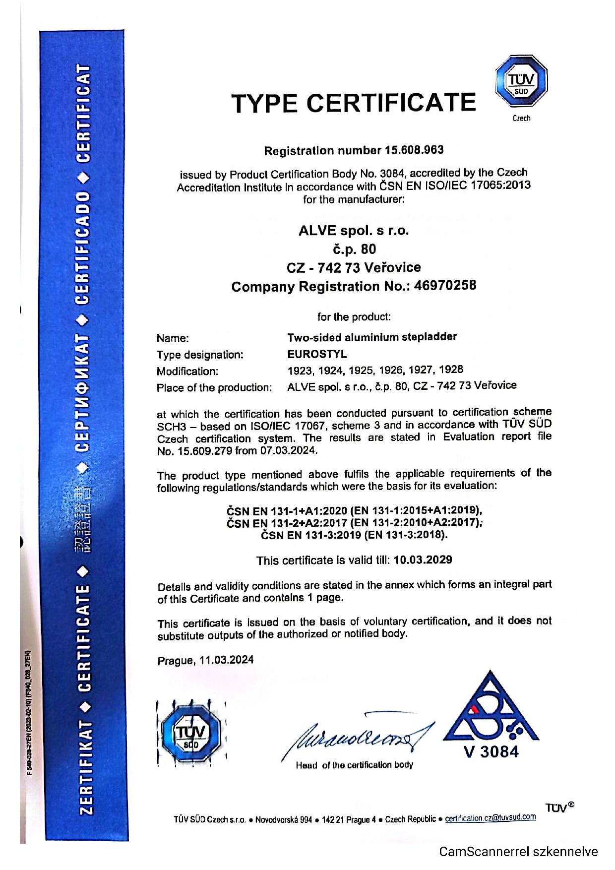 Alu. sobne merdevine kućne - 925 - EUROSTYL DOPPLO (Standard) 5+5 - 1,03 m - Alve (ČEŠKA)