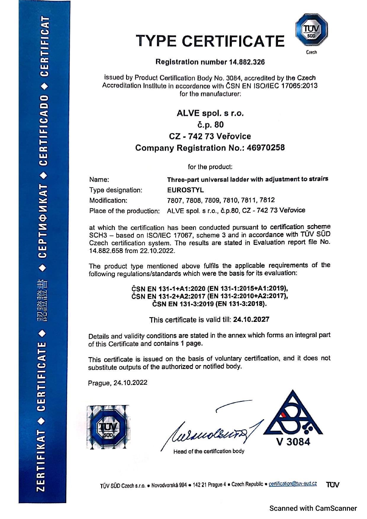 Naziv proizvoda : Alu. trodelne merdevine 3,15/7,11 m - 7611 - EUROSTYL (Standard) - 3x11 - Alve (ČEŠKA)