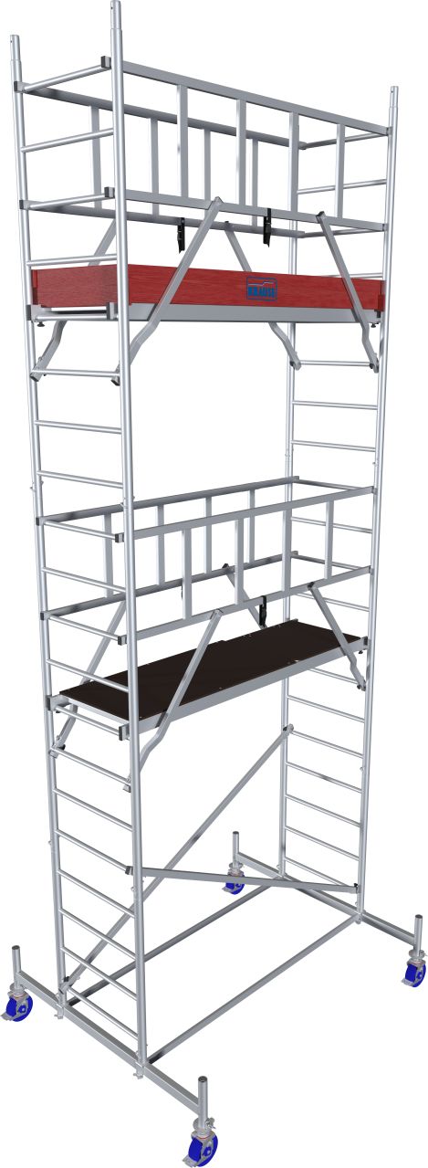 + Maksimalno rastojanje između dve radne platforme je 2m. Obezbeđuje udobnu i bezbednu montažu skele – bez alata.