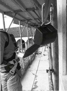 - Blokator pada sa gurtnom dužine 2,5m, apsorberom energije, plastičnim kućištem dva karabinera.