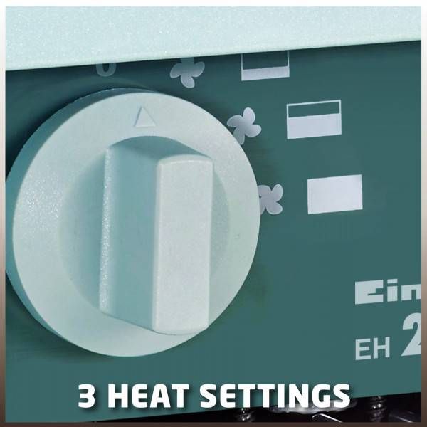 - Željena jačina grejanja se može jednostavno podesiti uz pomoć prekidača sa 3 položaja grejanja i kontinualno podesivog termostata.