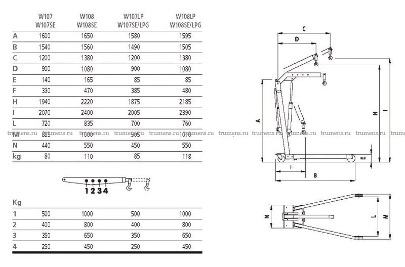 Naziv proizvoda : Hidraulični kran niskoprofilni (roda) 1000 kg sklopiva - Werther W108SE-LP
