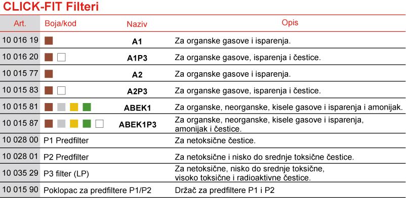 - Samo sa sertifikovanim filterima CLICK-FIT serije (u skladu sa standardima EN141, EN143)