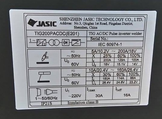 Jasic TIG-200P AC/DC (E201) je inverter za zavarivanje napravljen za (TIG) i ručno elektrolučno lučno (MMA) zavarivanje sa jednosmernom i naizmeničnom strujom. Koristi se za zavarivanje čelika, nerđajućeg čelika kao i legura aluminijuma.