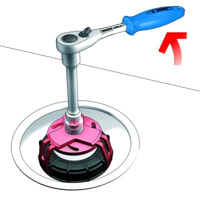 alat ima 3 pokretna kraka, koji čvrsto prihvataju poklopac rezervoara. Kako je prilaz poklopcu obično nedostupan, ključ je konstruisan tako da zahteva minimalni prostor. Jednostavnim postavljanjem ključa na čep i okretanjem u željenom smeru vrši se skidanje poklopca. Alat se podešava prema poklopcu i poklopac se skida veoma brzo i jednostavno. Ovaj alat osigurava bezbedan rad i dugotrajnost.