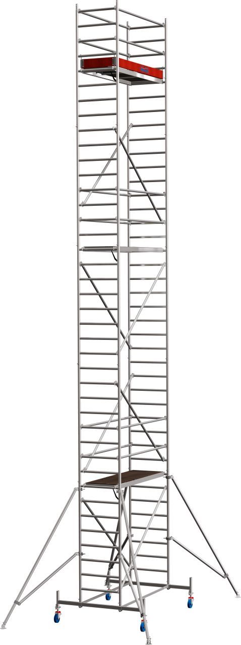- Koriste se točkovi sa podešavanjem visine i kočnicama – skela je pogodna za rad i na neravnim terenima.