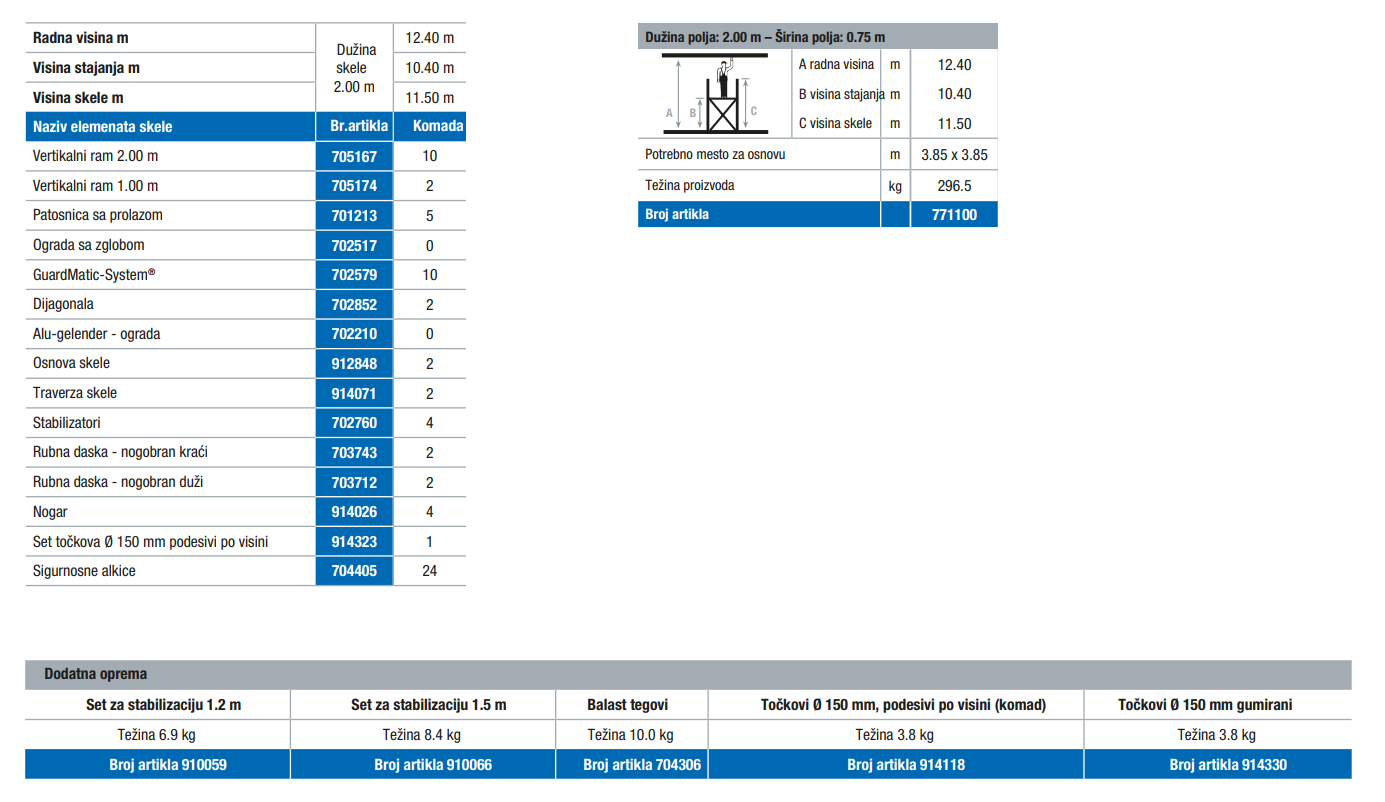 Naziv proizvoda : Krause alu skela STABILO serija 10, radna v. 12.4m, (2,00x0,75m) - 771100