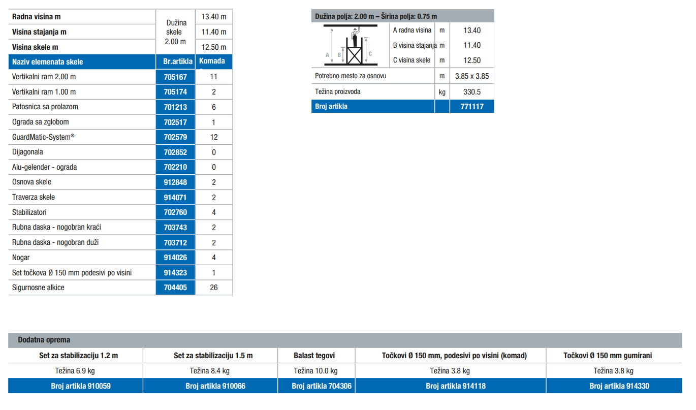 Naziv proizvoda : Krause alu skela STABILO serija 10, radna v. 13.4m, (2,00x0,75m) -771117