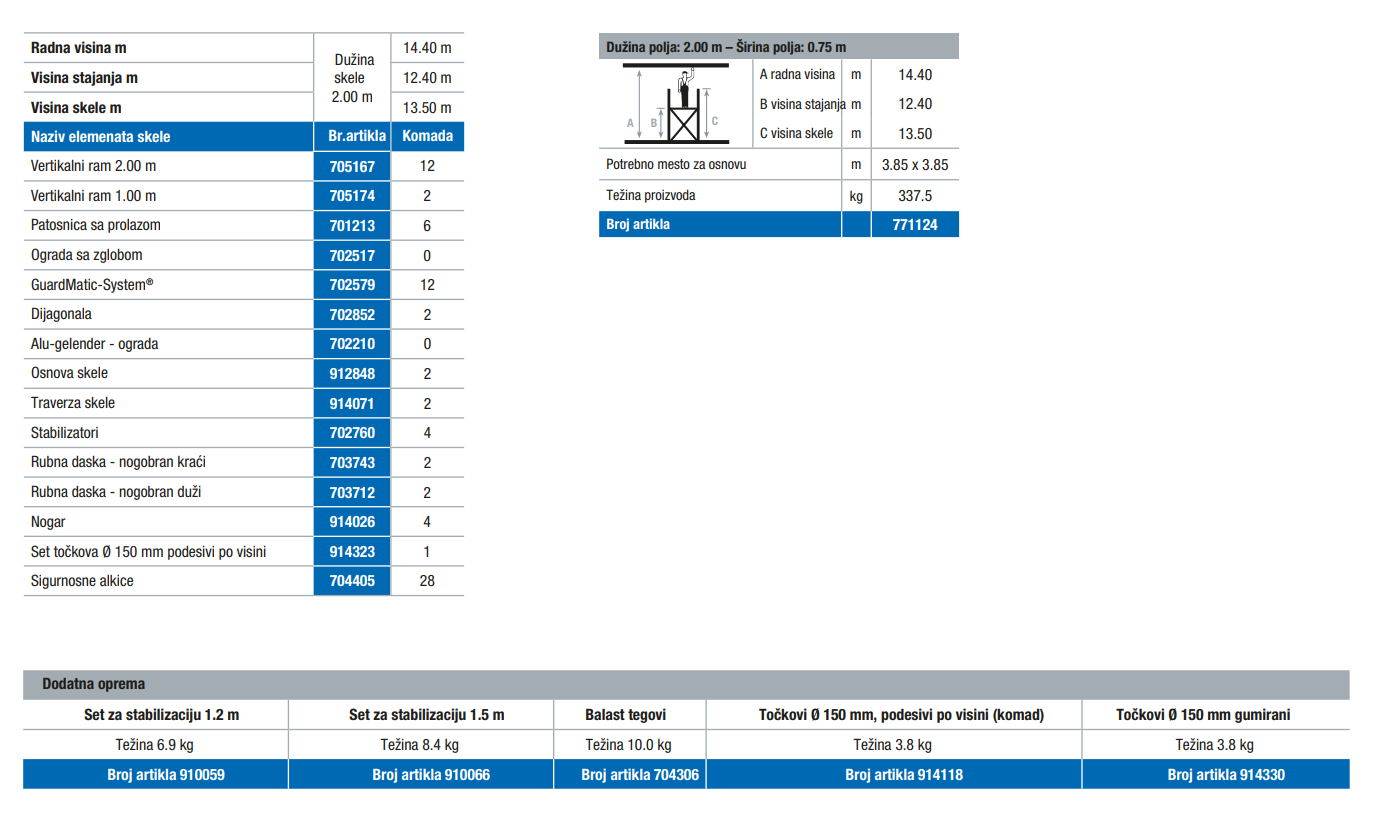 Naziv proizvoda : Krause alu skela STABILO serija 10, radna v. 14.4m, (2,00x0,75m) -771124