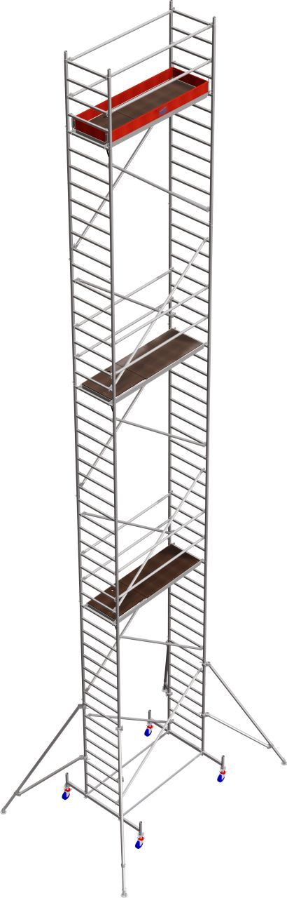 - Koriste se točkovi sa podešavanjem visine i kočnicama – skela je pogodna za rad i na neravnim terenima.
