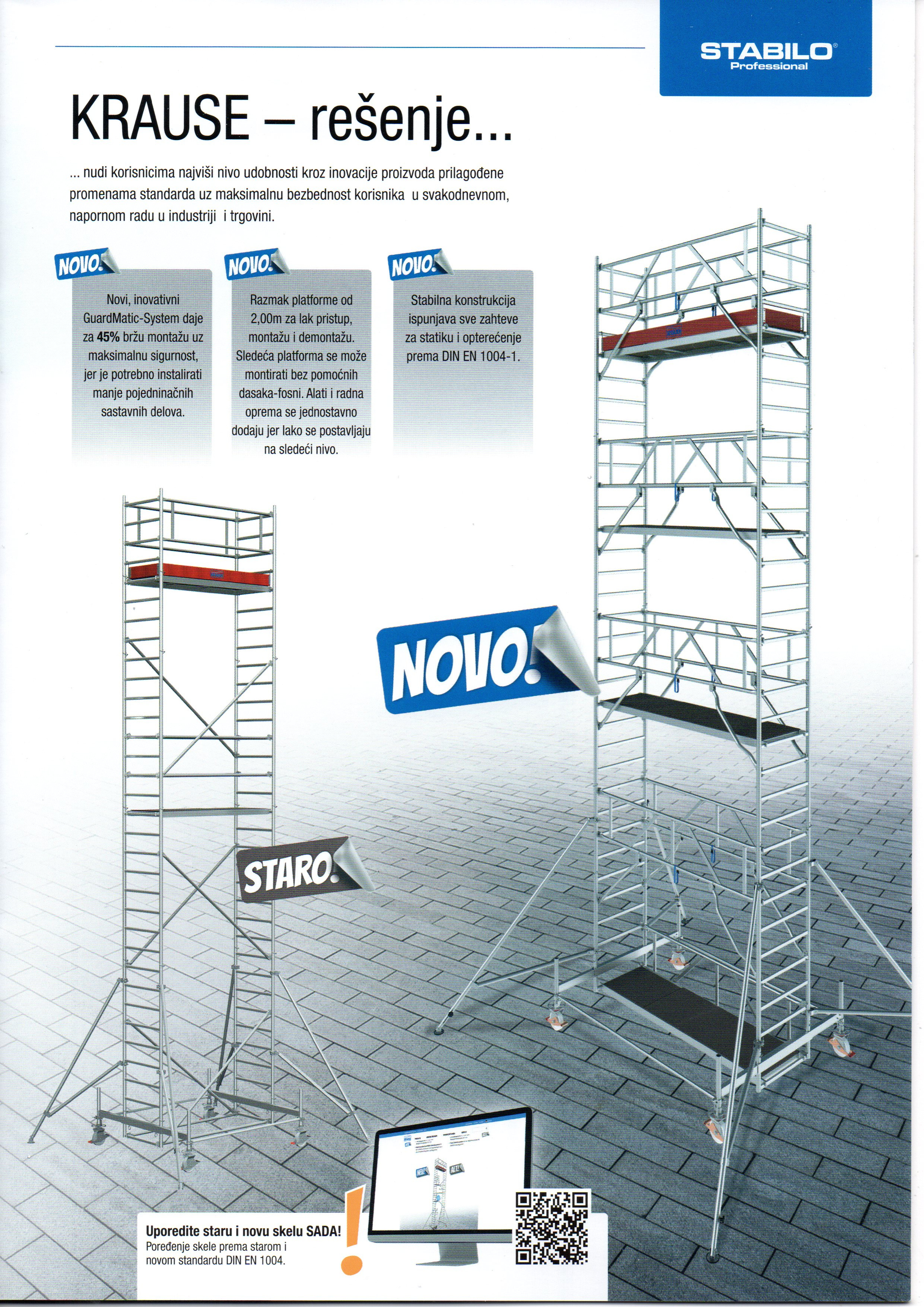 - Ispitane od strane TÜV/GS, zadovoljava norme EN 1004, nosivost skele 200 kg/m2 (kategorija skela: grupa 3)