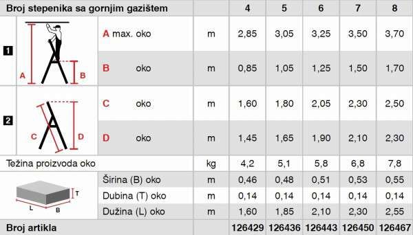 - Aluminijumske stepenaste merdevine sa širokim, neklizajućim komfornim gazištima i sigurnosnim rukohvatom