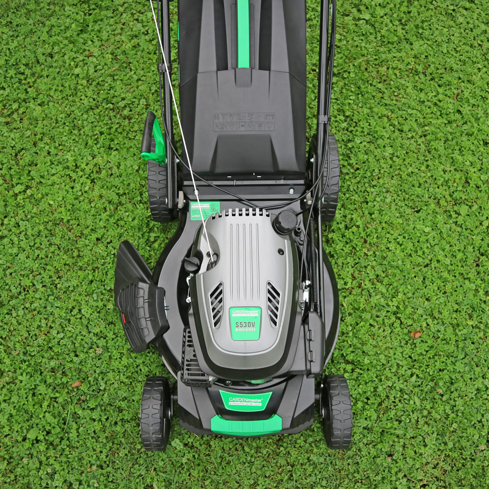 Samohodna kosačica sa pogonom na zadnje točkove S530V BLACK SERIES. Namenjena za košenje velikih površina, radna širina košenja je 53cm.nOvo je najveća radna širina dostupna za parkovske kosačice sa rotacionim nožem. Kosačica ima 4 funkcije košenja. Može se kombinovati izbacivanje pokošene trave u korpu i na stranu, laka konverzija. Kosačica poseduje dodatne funkcije kao što je indikator napunjenosti korpe, brzi konektor za priključenje creva za pranje kućišta vodom i držač za flaše i smartfon na ručki.