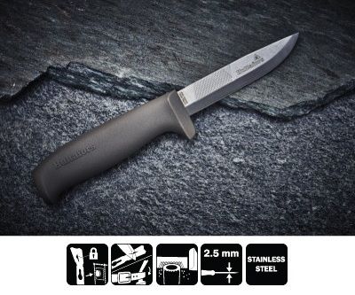 - Nož za vodoinstalatere sa turpijom za obradu ivica cevi i oštricom izrađenom od japanskog čelika. Ima jedinstvenu funkciju za pričvršćivanje futrole za dugme na radnoj odeći, tako da ne može da ispadne, ali da i dalje može lako da se skine. Oštrica je napravljena od nerđajućeg čelika debljine 2,5 mm, tvrdoće 57–59 HRC.