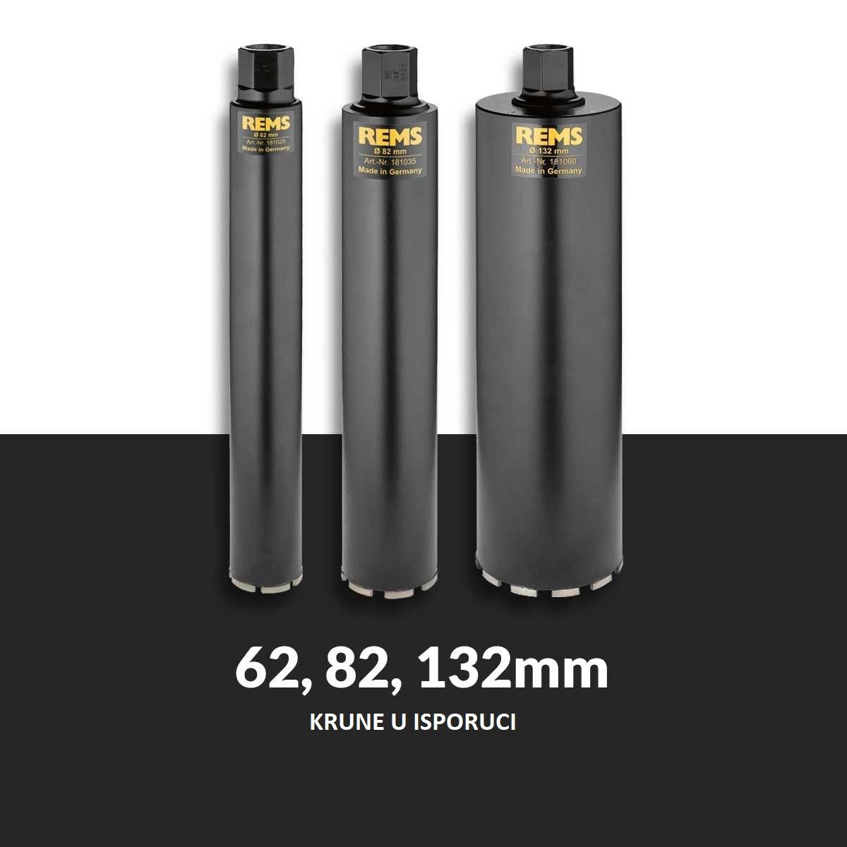 - Isporučuje se sa REMS univerzalnim dijamantnim bušaćim krunama UDKB Ø 62, 82, 132 mm