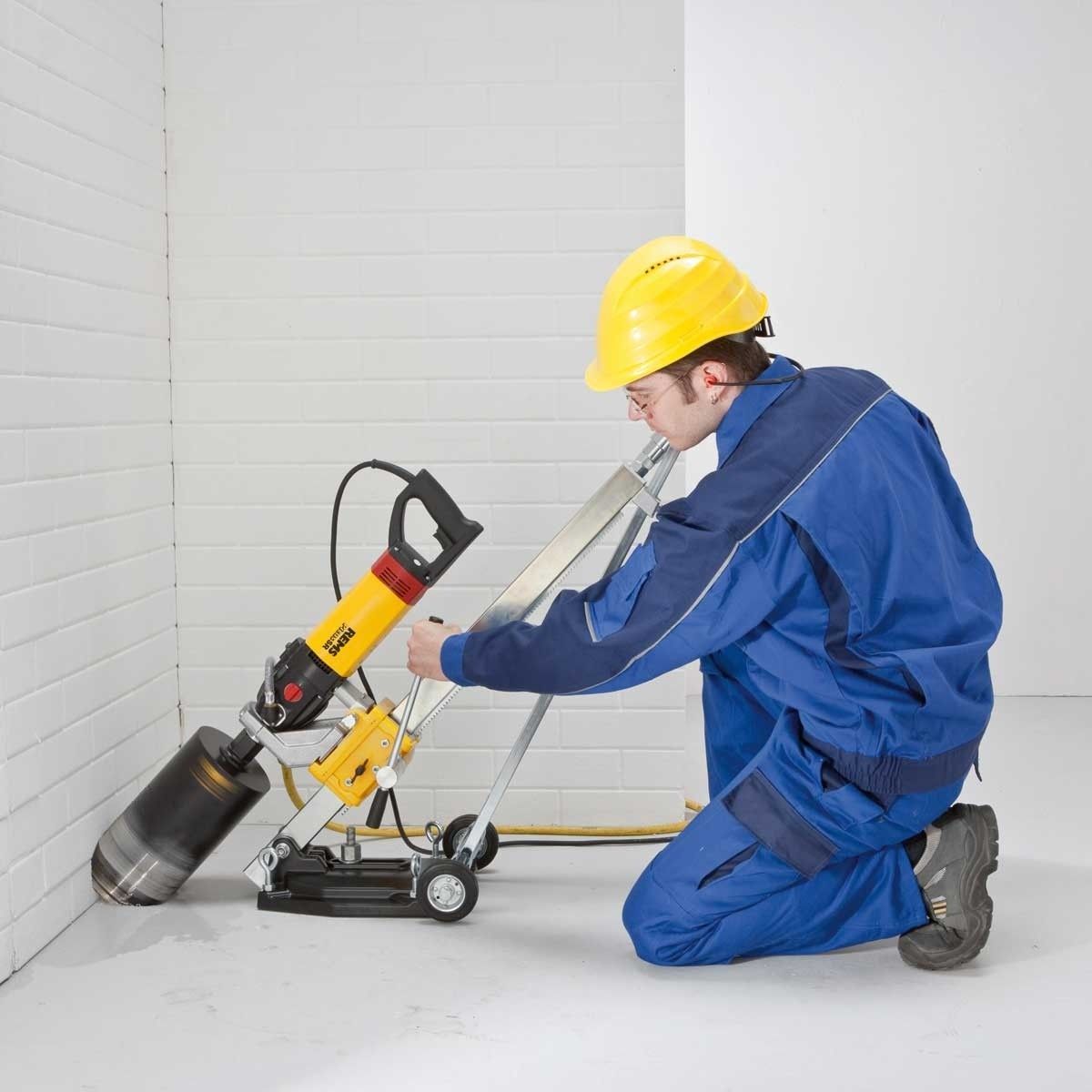 - Električna bušilica sa dijamantnim bušaćim krunama i regulacijom brzine. Za bušenje sa vađenjem jezgra na podlogama od običnog i armiranog betona do ≤ Ø 162 (200) mm, cigle i drugih materijala do ≤ Ø 250 mm. Za suvo i mokro bušenje, sa ručnim vođenjem ili sa nosačem burgija.