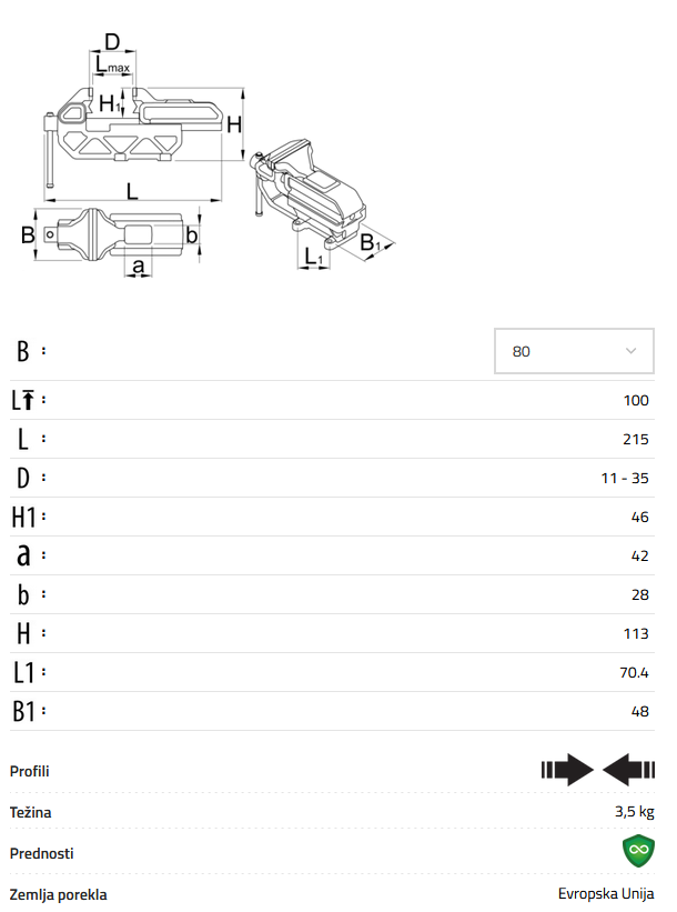 | 621564 | 80 | 100 | 215 | 11 - 35 | 46 | 42 | 28 | 64 | 113 | 3500 | 1G | 1 |