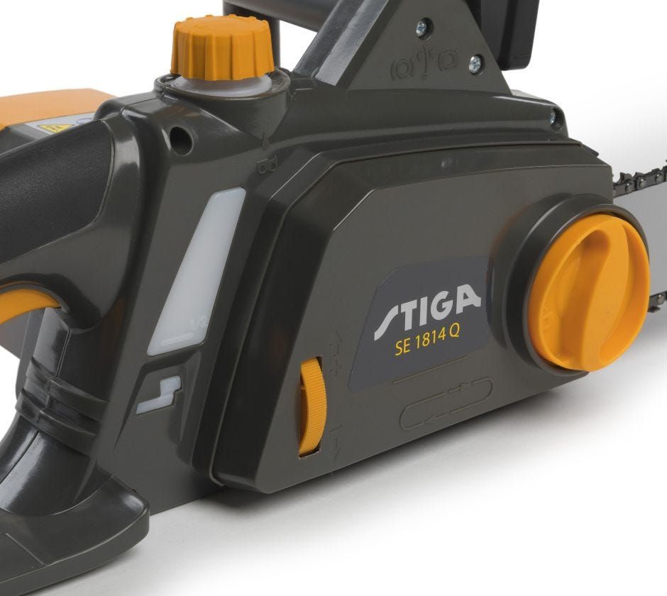 STIGA SE 1814 Q je visokokvalitetna motorna testera snage 1800 W sa mačem od 35 cm (14 “). Ovaj model električne testere je lagan, jednostavan za upotrebu i ergonomski. Testera ima nizak nivo buke, emisija i vibracija. Takođe obezbeđuje savršen rez na nula emisija. SE 1814 Q ima lako zatezanje za brzo i lako održavanje lanca bez potrebe za alatima. Ostale prednosti uključuju rezervoar sa indikatorom nivo.