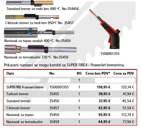 Za lemljenje u 90% slučajeva može zameniti set sa kiseonikom i gasom. Temperatura plamena 2400C