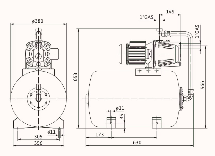 Sistem za vodosnabdevanje, navodnjavanje i korišćenje kišnice; sastoji se od samousisne pumpe sa do 7 m, rezervoara za pritisak i presostata sa automatskom funkcijom pokretanja i zaustavljanja