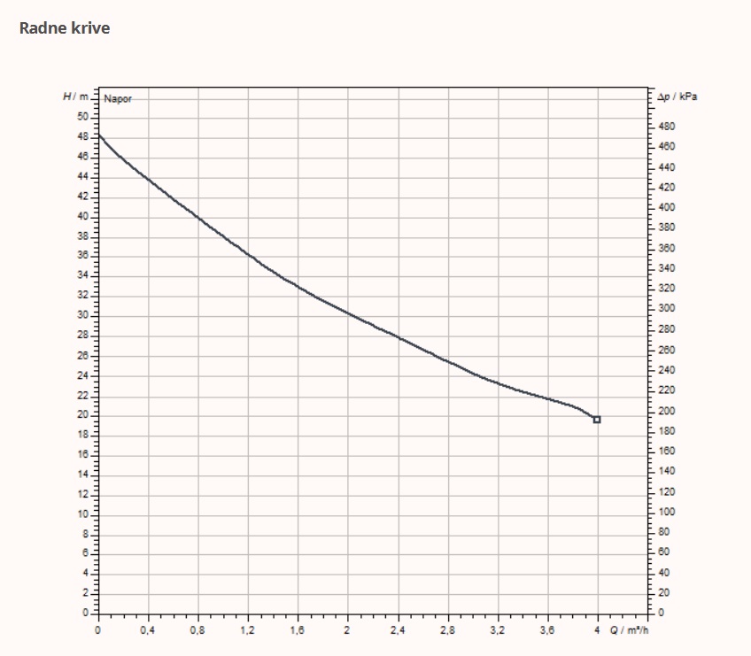 Učinak vratila P2(Q=maks.) izabranog radnog kola * broj pumpi 750 W