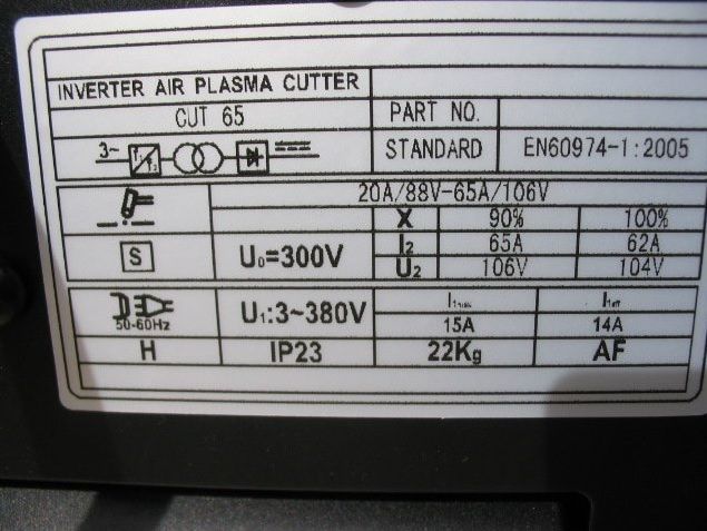Naziv proizvoda : WTL plazma sekač Plazma Cut 65 A TROFAZNI + gorionik PT80 - max. 35mm