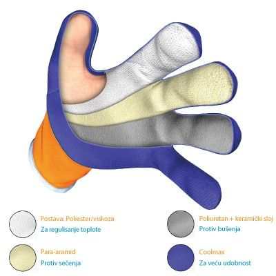 keramike koji štiti od bušenja. Postava je od poliestera. Rukavice su veoma