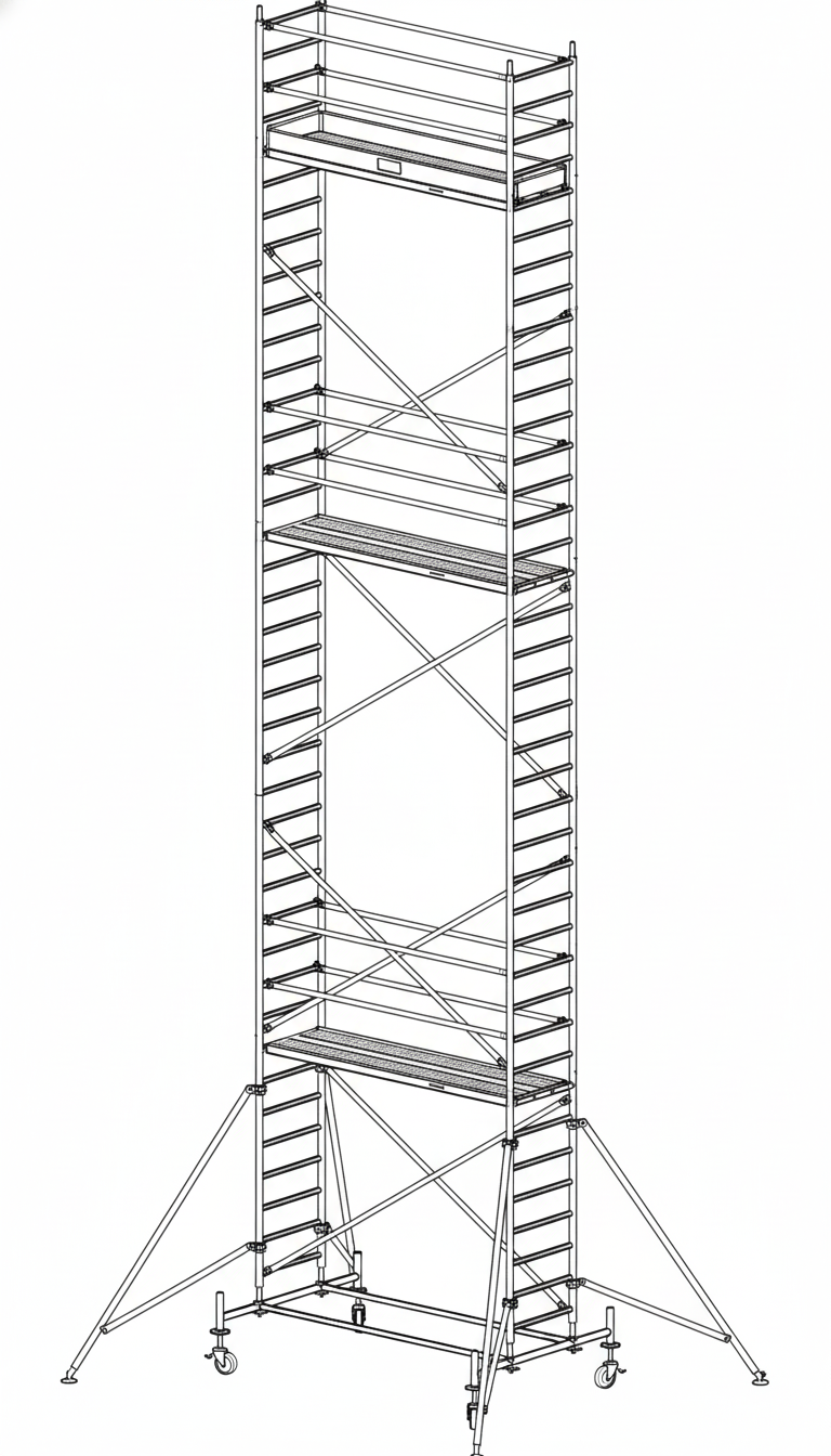 Naziv proizvoda : Aluminijumska pokretna skela ALUALTECO PRO 500, radna v. 11,4m (2,00x0,8m) -atestirana (proširena stopala)