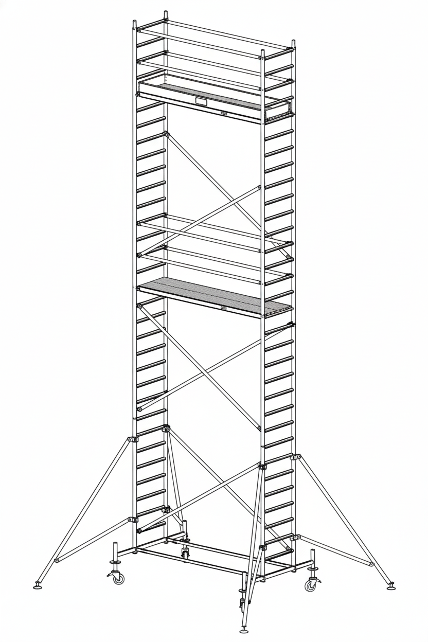 Aluminijumska pokretna skela ALUALTECO PRO 500, radna v. 9,4m (2,00x0,8m) -atestirana (proširena stopala)