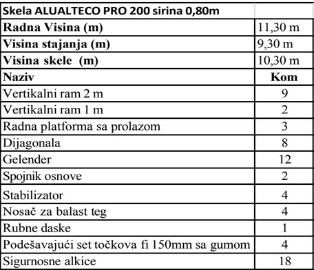 Naziv proizvoda : Aluminijumska pokretna skela (i na stepeništu) ALUALTECO PRO 200, radna-dohvatna v. 11,3m (2,00x0,8m) -atestirana (stopala bez prosirenja)