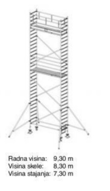 Naziv proizvoda : Aluminijumska pokretna skela (i na stepeništu) ALUALTECO PRO 200, radna v. 9,3m (2,5x0,8m) -atestirana (stopala bez prosirenja)