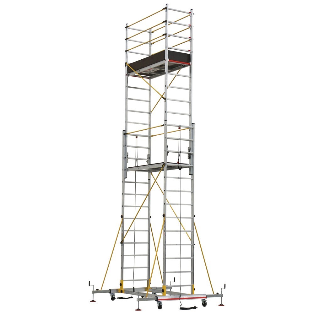 Dvodelne aluminijumske skele S007XLN sadrže dve platforme, stabilizatore koji imaju mogućnost podešavanja nagiba u sve 4 tačke. Veoma su lagane i praktične, jednostavne za montažu što Vam omogućava da uštedite na vremenu. Podloga na platformi napravljena je od materijala koji se ne kliza. Moguće je podešavanje visine na platformi.