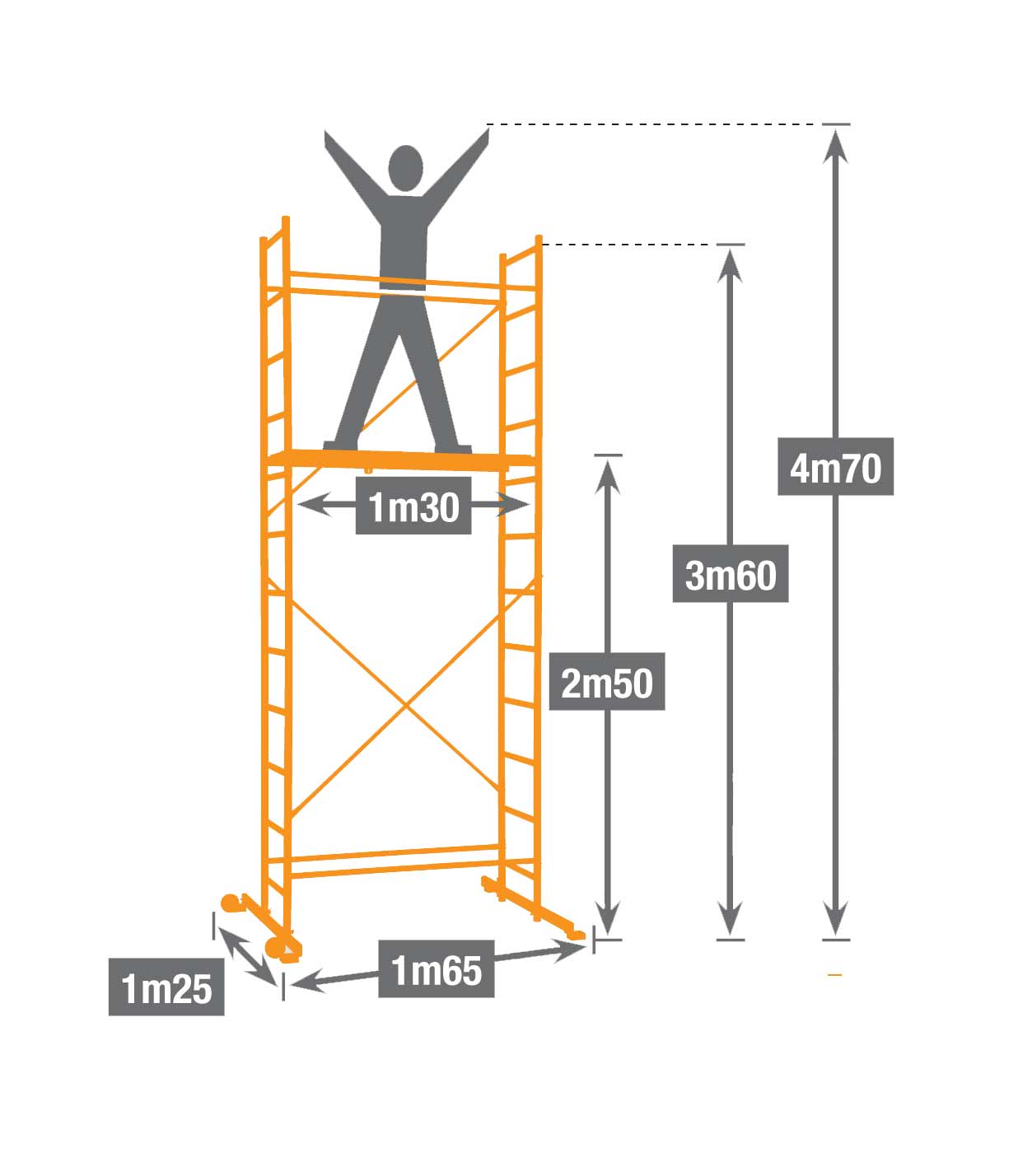 Visina platforme 2,5 metara, Maksimalna radna visina 4,7m