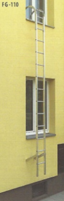 Vatrogasci stepenici (prečnik: 25 mm) brušeni i presovani u bočnim gredama, dodatni preklopni deo od kovanog gvožja pocinkovane specijalne kuke sa vrhom za razbijanje prozora i steznog prstena za karabiner i konopac.