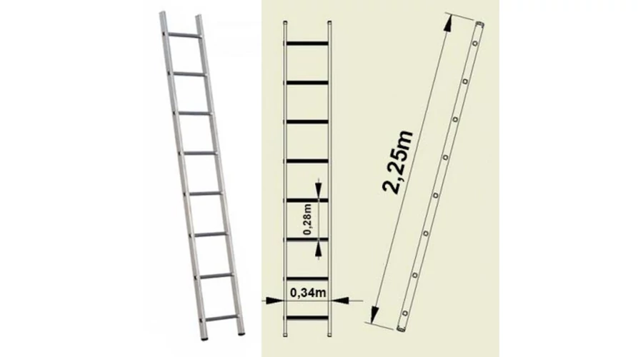 Naziv proizvoda : Aluminijumske jednodelne merdevine 1x8, 2.25m Microcer