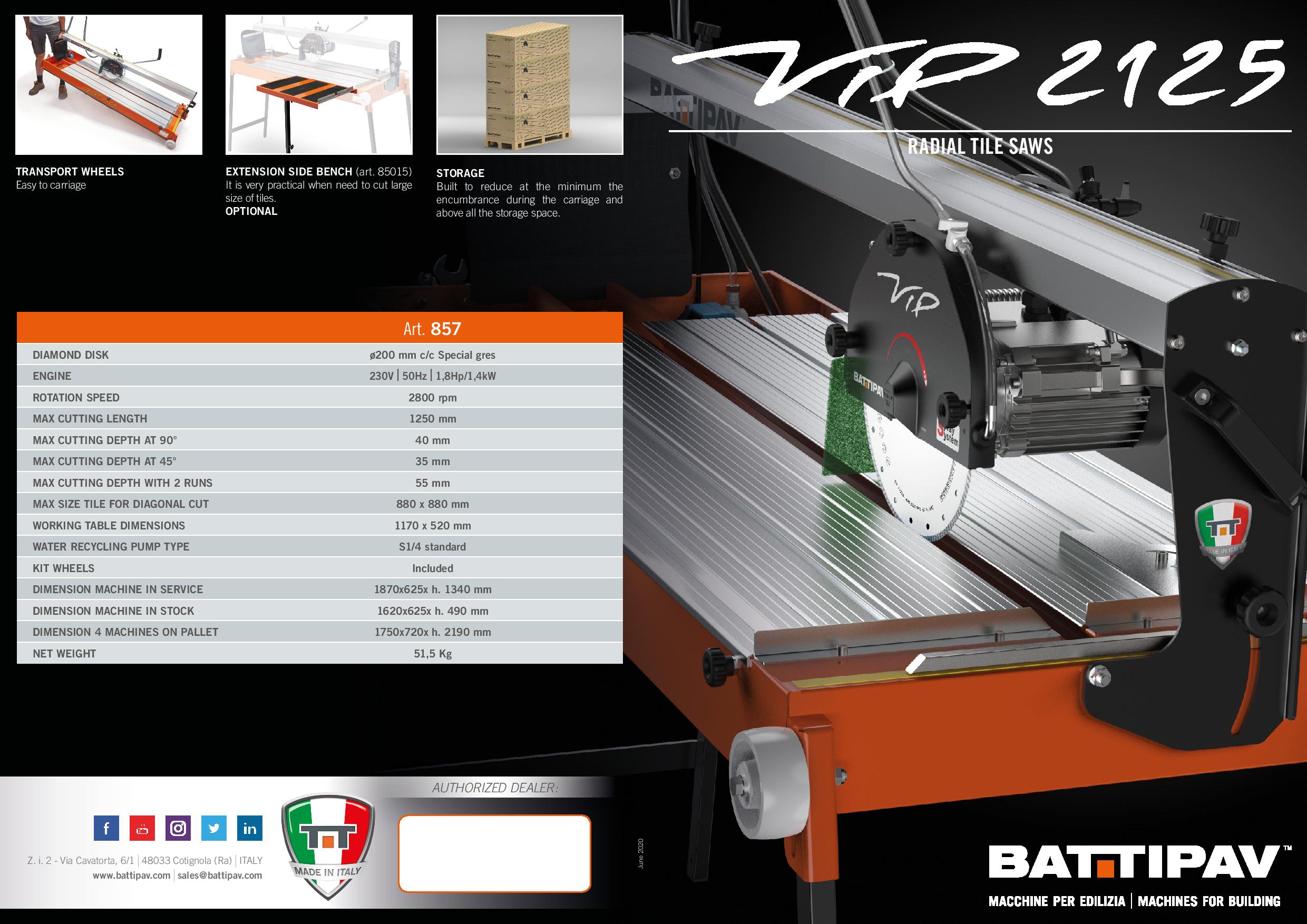 Naziv proizvoda : Battipav električni cirkular za keramiku VIP 2125, 1400W, 125cm sa pločom