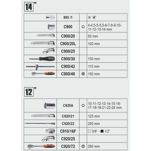 Nasadni ključevi prihvat 1/4 4 - 4,5 - 5 - 5,5 - 6 - 7 - 8 - 9 - 10 - 11 - 12 - 13 - 14 mm