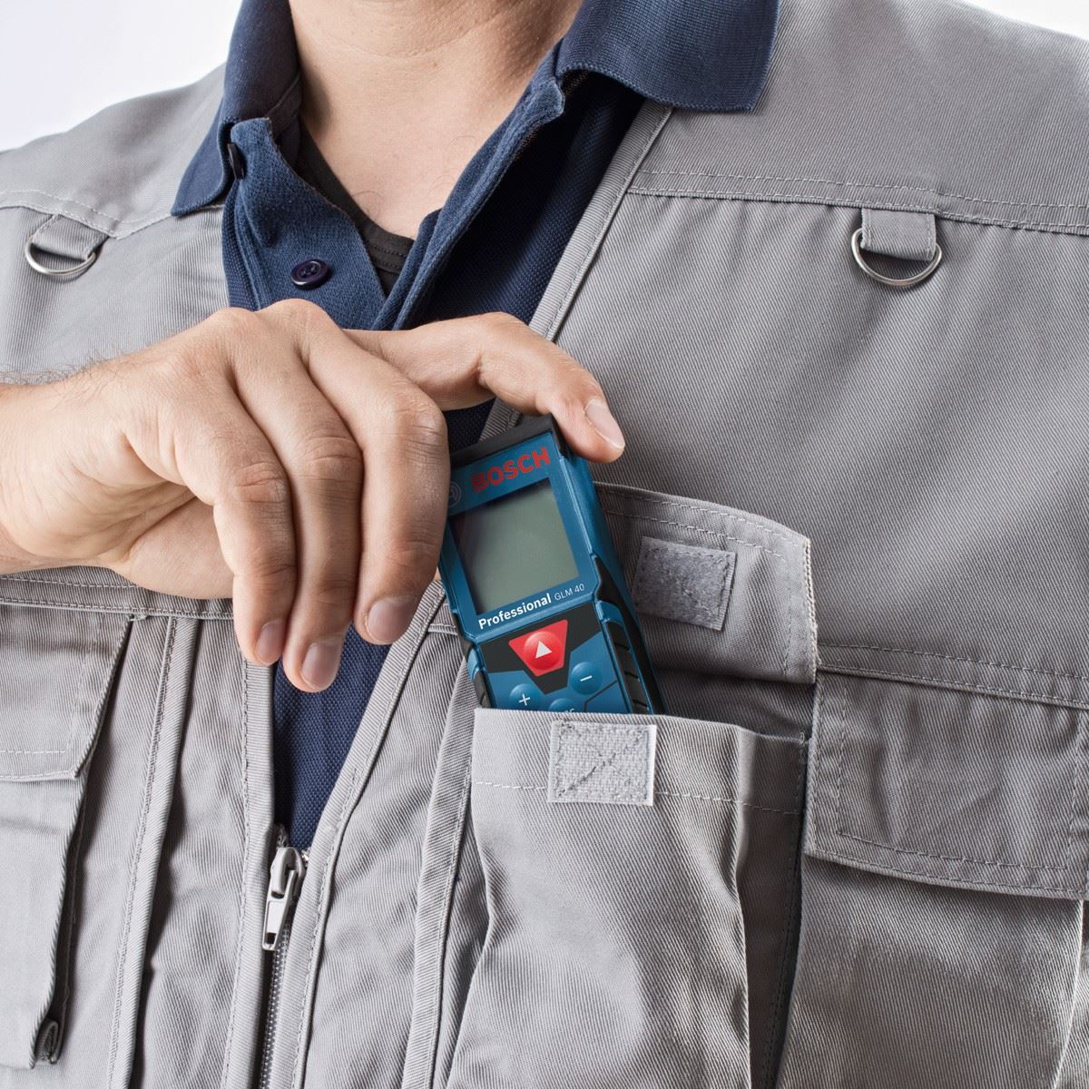 GLM 40 Bosch - Sve merodavne funkcije u kompaktnom dizajnu. Merenje dužine, utvrđivanje površina, izračunavanje zapremina – sve intuitivnim načinom korišćenja. Osvetljeni displej sa tri reda za najbolju čitljivost. Funkcija memorije omogućava jednostavan pristup do poslednjih deset merenja.
