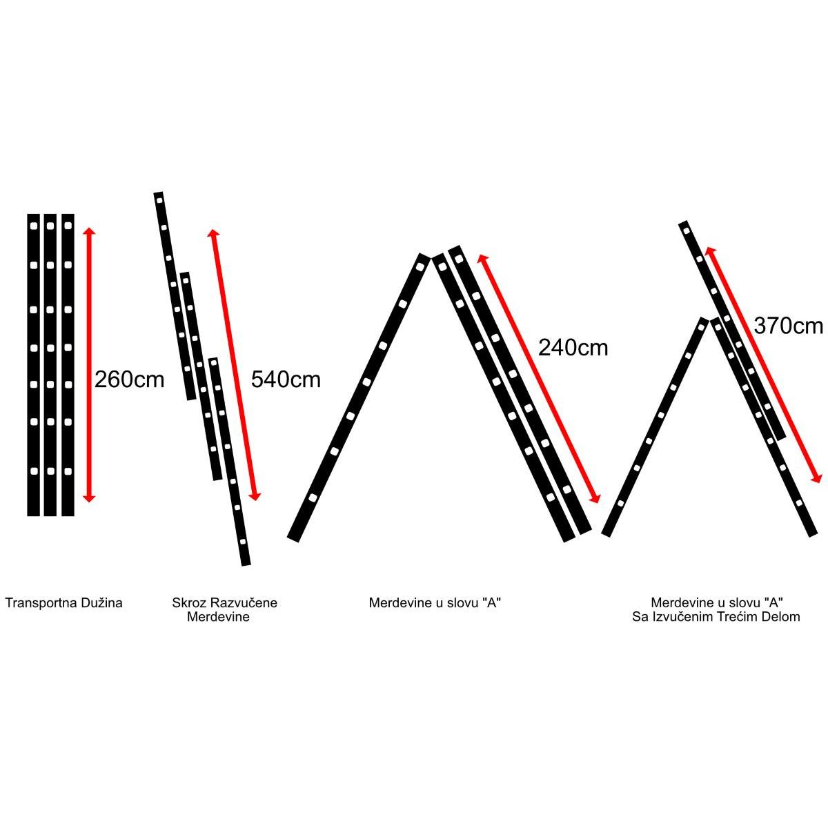 Naziv proizvoda : CENTAURE alu trodelne merdevine 3x9, 2.6/5.4m