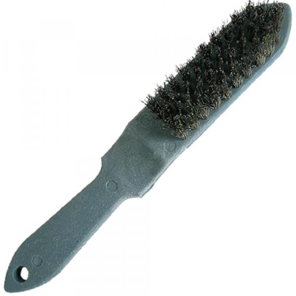 Ručna čelična četka sa PVC drškom se koristi za čišćenje raznih metalnih površina od prljavštine, korozije i farbe. Snopovi talasastih čeličnih vlakana dužine 25 mm su raspoređene u 5 redova.