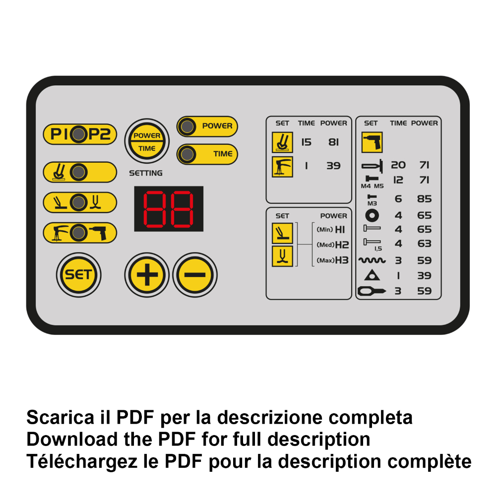 Jednostavan za upotrebu: podešavanje vremena zavarivanja i snage prikazano je u pomoćnoj tabeli.