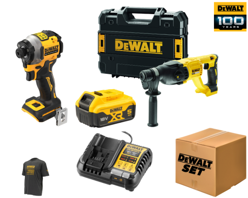 Naziv proizvoda : DeWALT 100 years DWSET4, set dva aku alata DCH133NT + DCF850N, 1x 5.0Ah, 18V + majica