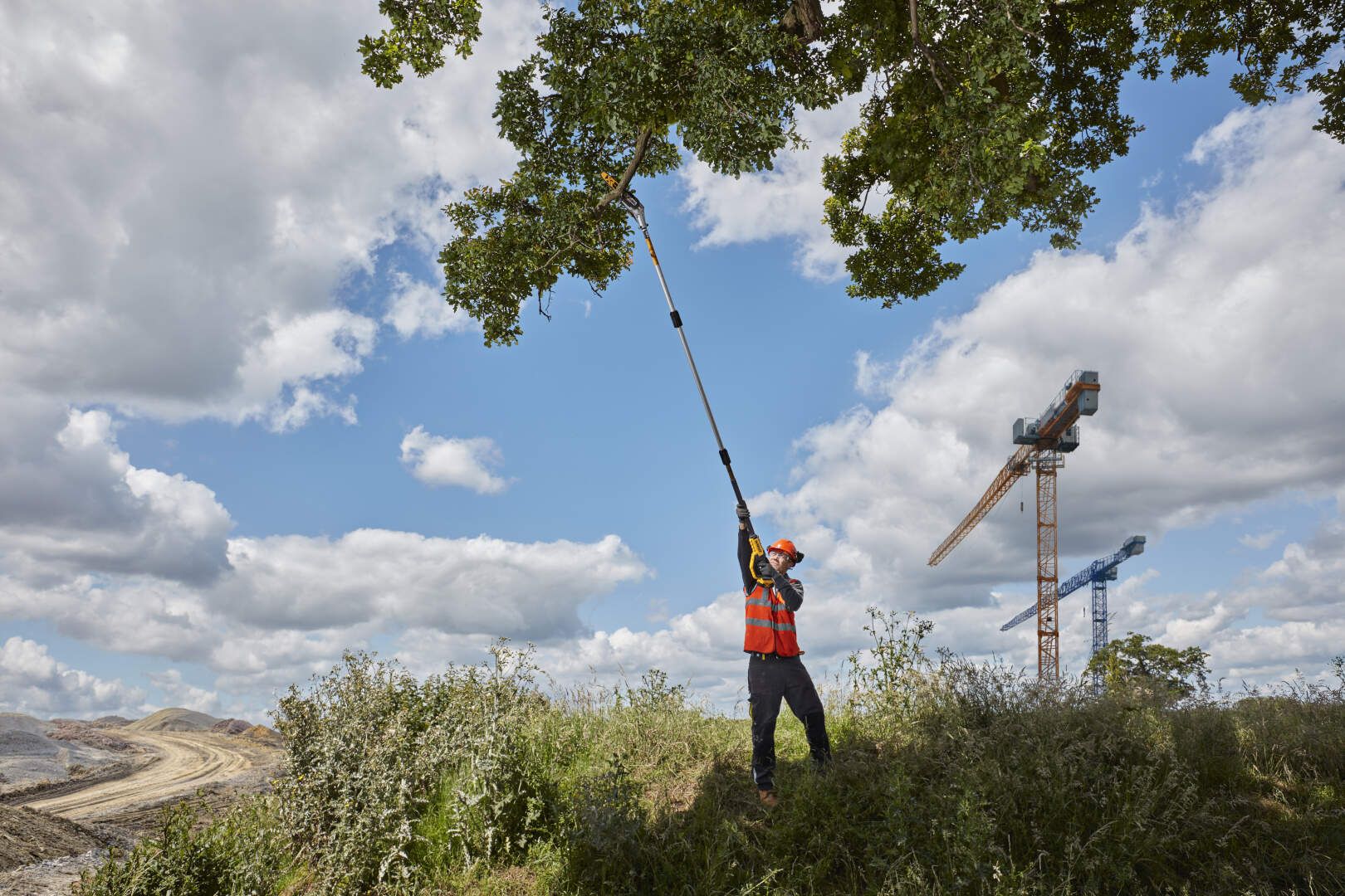 - Metalne trake za izbacivanje i kuka za grvo za jednostavno sklanjanje orezanih grana
