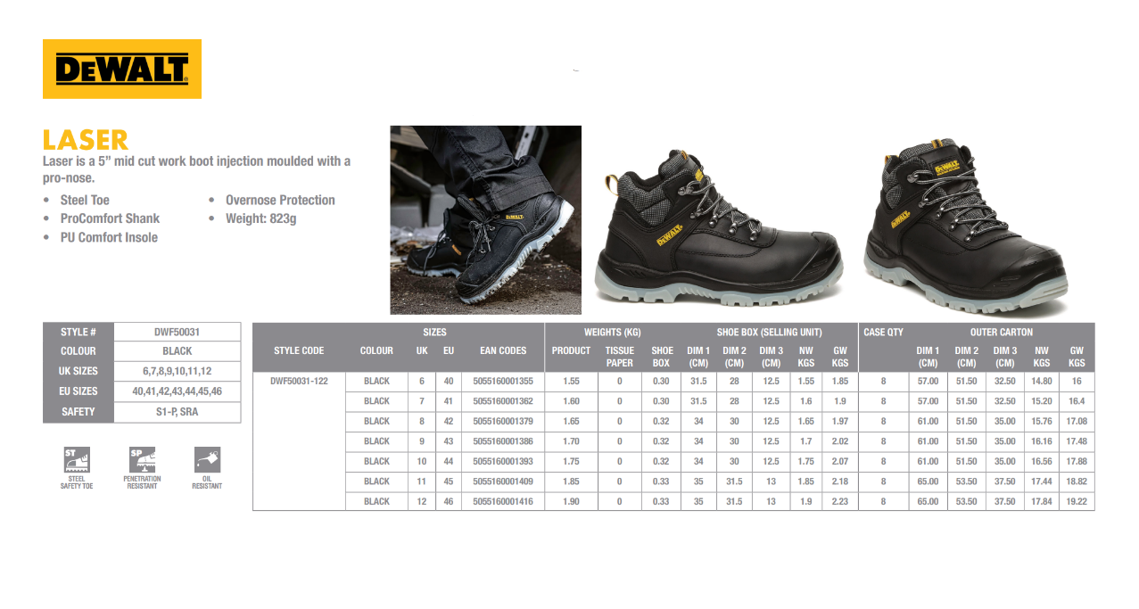 Naziv proizvoda : DeWalt DWF50031-122 Laser Duboke zaštitne radne cipele S1-P SRA zaštita