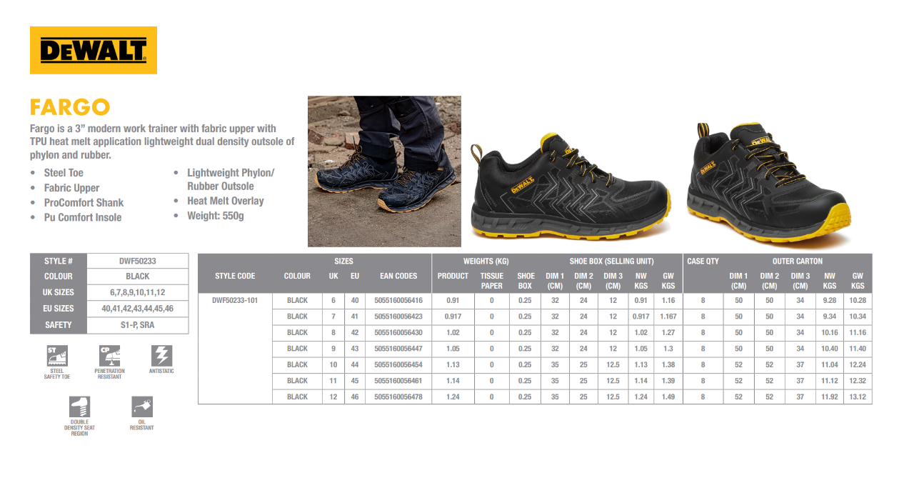 Naziv proizvoda : DeWalt DWF50233-101 Fargo plitke radne cipele S1-P SRA zaštita