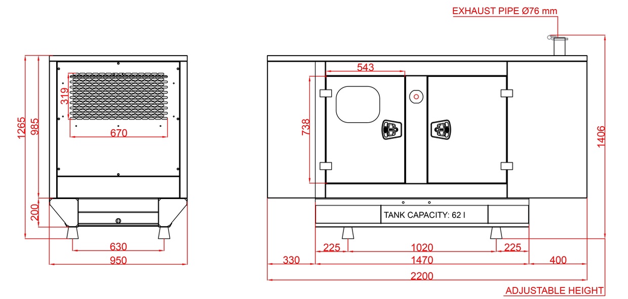 Zvučno izolovane kabine izrađene su od pocinkovanog lima, otporne na rđu i ekstremne vremenske uslove. Modularnog su dizajna, tretirane specijalnim procesom i farbane elektrostatičkom prah-bojom. Modularna struktura omogućava lako rastavljanje, što olakšava servis i zamenu delova na terenu. Kabine su projektovane tako da obezbede odgovarajuće hlađenje i nesmetanu izlaznu snagu generatora u odnosu na temperaturu okoline, bez pada performansi tokom rada. Pre proizvodnje se vrše prototipska testiranja radi provere usklađenosti sa zahtevima buke i temperature. Opcionalno su dostupne i kontejnerske i super-tihe kabine.