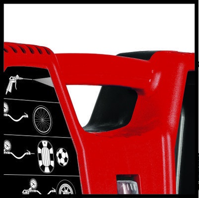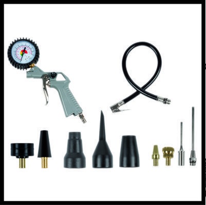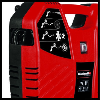 Kompresor Einhell TC-AC 180/8 OF je mali, pokretni pneumatski kompresor u praktičnoj prenosivoj izvedbi. Impresivno lagan i kompaktan dizajn znači da se može ergonomski i komforno nositi, tako da je kompresor uvek pogodan za mobilnu upotrebu i može se odložiti u minimalnom prostoru. Kompresor se pokreće motorom bez ulja i bez servisa, tako da ima samo male zahteve za održavanjem. Kompresor pruža maksimalni pritisak od 8 bara i pogodan je za širok spektar primene, na primer napumpavanje guma za automobile i bicikle, lopte, bazene i vazdušne dušeke, zajedno sa čišćenjem i produvavanjem izradaka, površina, kućišta i motora u radionici. Proizvod se isporučuje u kompletu sa pištoljem za duvanje, manometrom za pritisak u gumi i setom od 8 delova adaptera, plus 3 metra creva za komprimovani vazduh sa spojnicom za brzo otpuštanje. Praktični pretinac za odlaganje opreme je ugrađen u kućište.