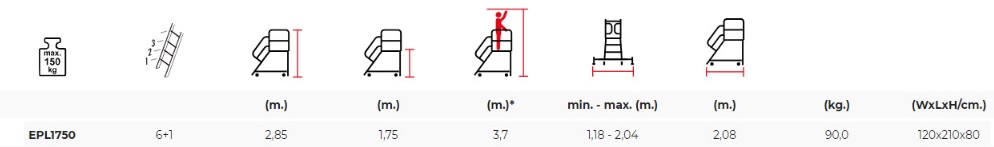 EPL industrijska platforma sa stabilizatorom 6+1, visina gaz. 175cm - TUV SERTIFIKAT