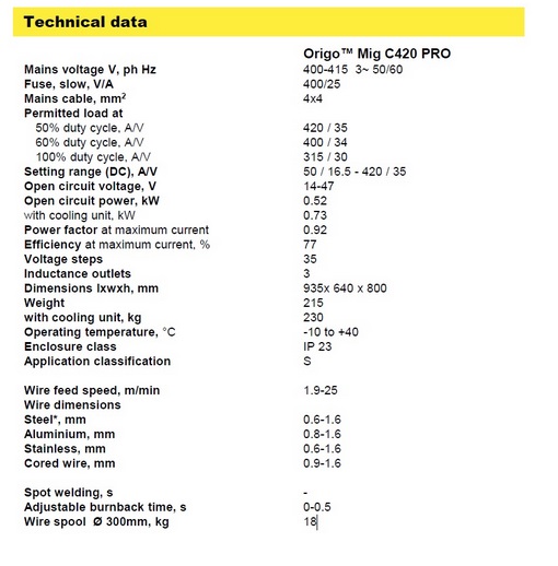 Kompaktni uređaji za profesionalnu primenu Origo Mig C420 W PRO 400V
